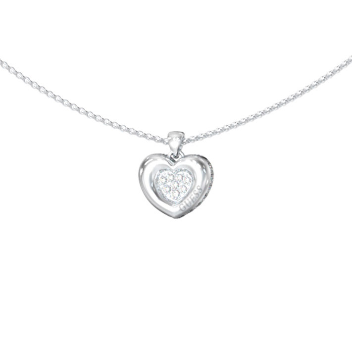GUESS L.O.V.E. -kaulakoru on herkkä ja romanttinen koru arkeen tai lahjaksi. Hopeanvärisestä ruostumattomasta teräksestä valmistettu sydänriipus säihkyy kristallikivin. Säädettävä pituus 40,7–45,7 cm ja papukaijalukko takaavat hyvän istuvuuden ja käyttömukavuuden.