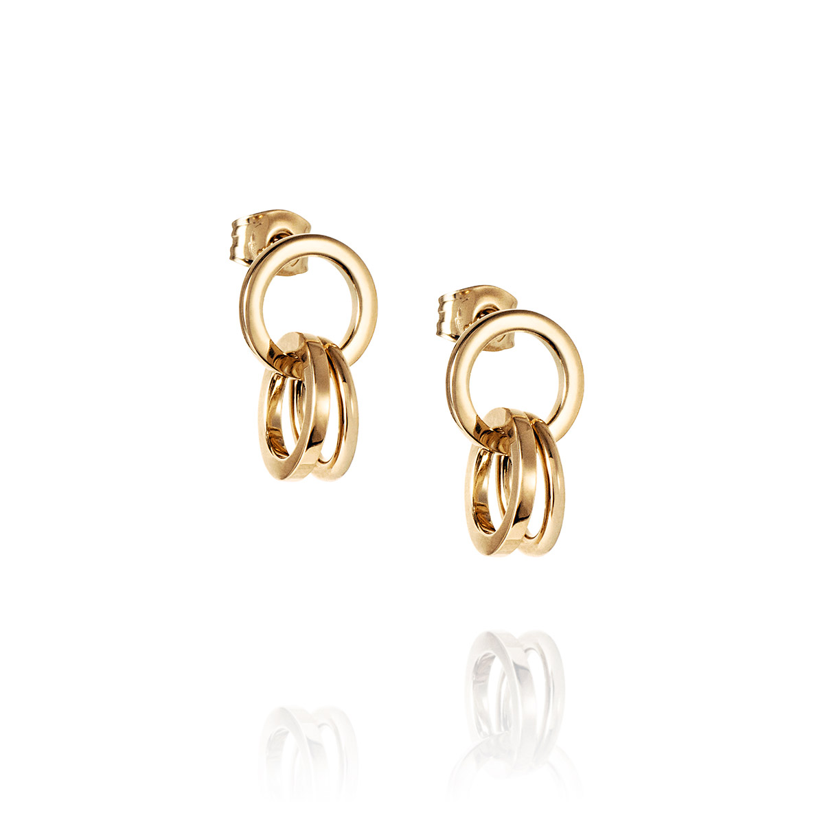 Efva Attlingin Messy Rings -korvakorut edustavat modernia muotoilua ja leikkisää eleganssia. Korujen kolme toisiinsa linkittyvää rengasta symboloivat elämän eri puolia – järjestystä ja kaaosta, jotka yhdessä muodostavat harmonisen kokonaisuuden.