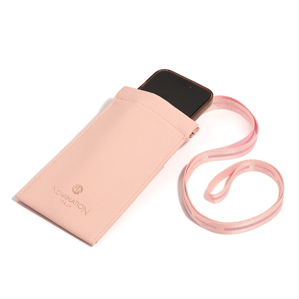 Pussukassa on ylellinen vuori, ruusukullan sävyiset yksityiskohdat ja hienostunut Nomination Italy -logo. Takapuolelta löytyy kätevä korttitasku, ja irrotettavan hihnan ansiosta voit kantaa sitä juuri haluamallasi tavalla. Tämä monikäyttöinen pussukka sopii täydellisesti joko älypuhelimelle tai silmälaseille.