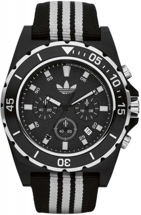 Adidas Stockholm ADH2664 chronograph rannekello kangasrannekkeella. Kellon runko on kovamuovia ja sen leveys on 45mm ja rannekkeen 20mm. Kellossa ajantotto, 24h näyttö sekä päivyri. Adidas kelloille myönnetään 2 vuoden takuu ja ne toimitetaan valmistajan alkuperäisessä rasiassa postikuluitta.