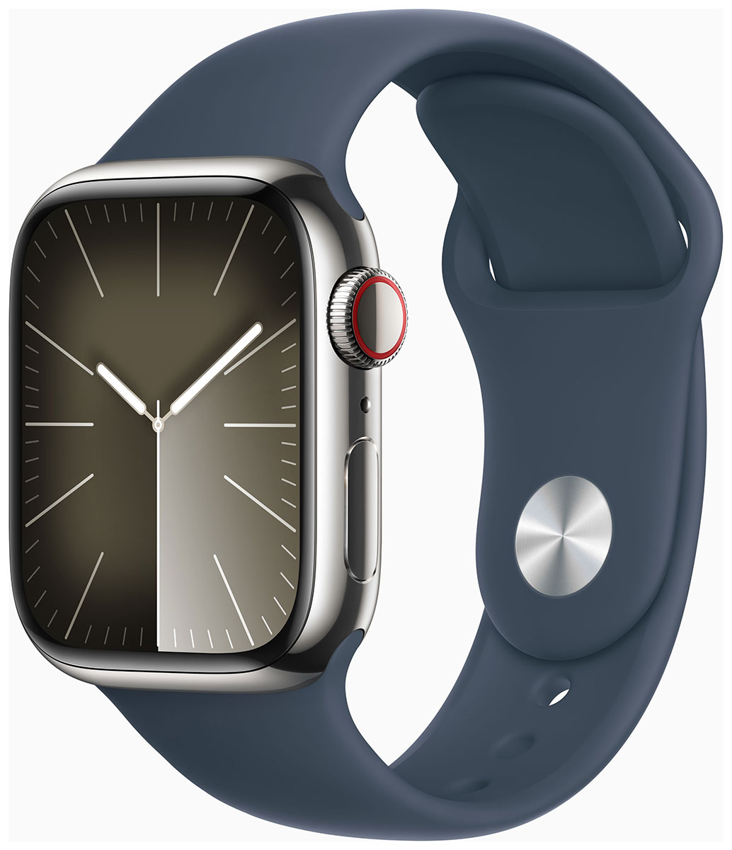 Safiirilasi, ruostumattomasta teräksestä valmistettu runko ja tasainen pohja tekevät Apple Watch Series 9:sta iskunkestävän. Se on myös vesitiivis 50 metriin saakka. Apple Watch Series 9 edistyksellisen järjestelmän tehostama näytön enimmäiskirkkaus on tuplasti korkeampi kuin Series 8:ssa. 2000 nitin (LED-näytön valovoima) näytöltä on helppo lukea kirkkaassakin auringonpaisteessa. Toisen sukupolven Ultra Wideband ‑siru mahdollistaa uudenlaisen integraation HomePod-sovelluksen kanssa. Kun musiikkia toistetaan, Apple Watch Series 9 avaa Toistossa Nyt ‑näytön, jolla voit hallita musiikintoistoasi helposti. Ultra Wideband mahdollistaa tarkan etsinnän, joka voi nyt ohjata sinut iPhonen luokse näyttämällä sen arvioidun etäisyyden ja suunnan. Kun lähestyt iPhoneasi, tuntopalaute, ääni- ja visuaalinen merkki auttavat paikantamaan sen. Joustava ja kestävä sininen elastomeeriranneke on pituudeltaan 130-180 mm.
