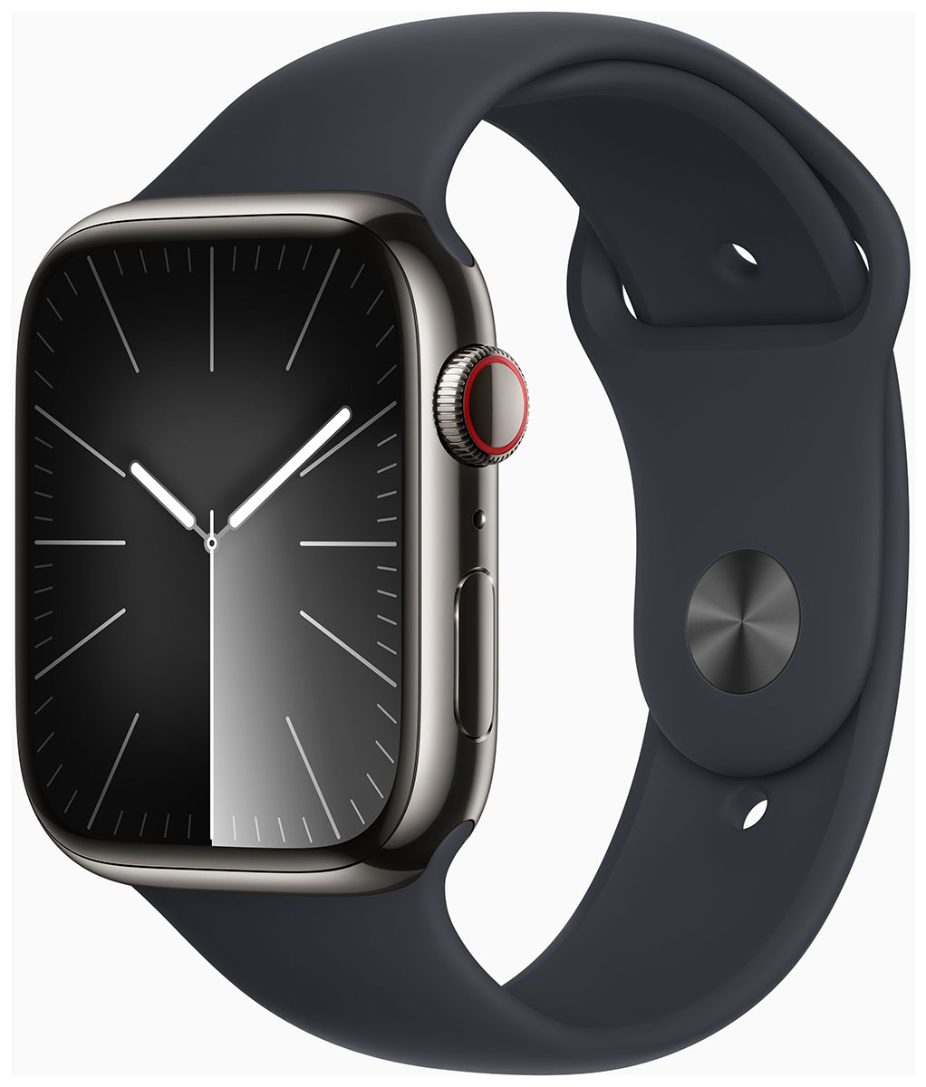 Safiirilasi, ruostumattomasta teräksestä valmistettu runko ja tasainen pohja tekevät Apple Watch Series 9:sta iskunkestävän. Se on myös vesitiivis 50 metriin saakka. Apple Watch Series 9 edistyksellisen järjestelmän tehostama näytön enimmäiskirkkaus on tuplasti korkeampi kuin Series 8:ssa. 2000 nitin (LED-näytön valovoima) näytöltä on helppo lukea kirkkaassakin auringonpaisteessa. Toisen sukupolven Ultra Wideband ‑siru mahdollistaa uudenlaisen integraation HomePod-sovelluksen kanssa. Kun musiikkia toistetaan, Apple Watch Series 9 avaa Toistossa Nyt ‑näytön, jolla voit hallita musiikintoistoasi helposti. Ultra Wideband mahdollistaa tarkan etsinnän, joka voi nyt ohjata sinut iPhonen luokse näyttämällä sen arvioidun etäisyyden ja suunnan. Kun lähestyt iPhoneasi, tuntopalaute, ääni- ja visuaalinen merkki auttavat paikantamaan sen. Joustava ja kestävä musta elastomeeriranneke on pituudeltaan 145 - 220 mm.