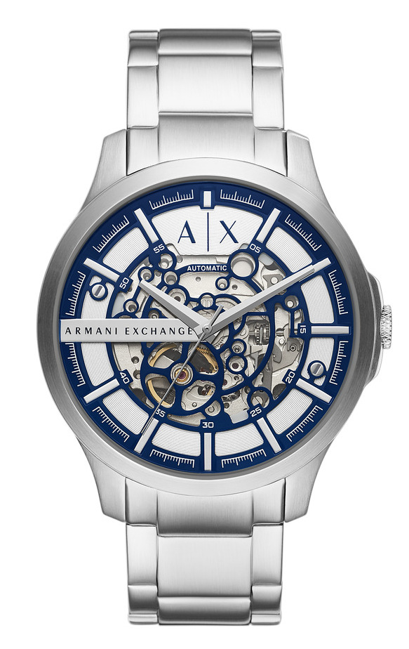 Armani Exchage-mallistoon kuuluva HAMPTON AX2416 on Miyotan 82S0-automaattikoneistolla varustettu puoliluurankokello. Kellon runko ja ranneke on ruostumatonta terästä, ja mineraalilasin alta voi nähdä kellon 21-kivisen koneiston, jossa on 42 tunnin käyntivara. Rungon leveys on 46 mm, ja rannekkeen kiinnityskohdan leveys on 22 mm. Armani-kelloilla on 2 vuoden takuu, ja ne toimitetaan valmistajan alkuperäisessä rasiassa.