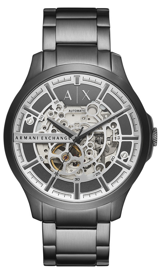 Armani Exchage-mallistoon kuuluva HAMPTON AX2417 on Miyotan 82S0-automaattikoneistolla varustettu savunharmaa puoliluurankokello. Kellon runko ja ranneke on ruostumatonta terästä, ja mineraalilasin alta voi nähdä kellon 21-kivisen koneiston, jossa on 42 tunnin käyntivara. Rungon leveys on 46 mm, ja rannekkeen kiinnityskohdan leveys on 22 mm. Armani-kelloilla on 2 vuoden takuu, ja ne toimitetaan valmistajan alkuperäisessä rasiassa.