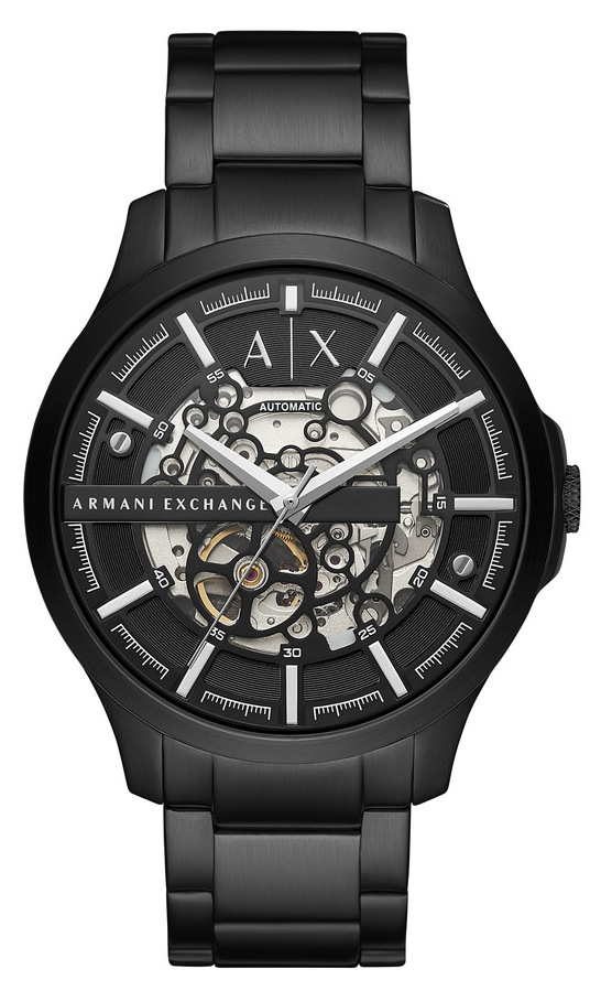 Armani Exchage-mallistoon kuuluva HAMPTON AX2418 on Miyotan 82S0-automaattikoneistolla varustettu musta puoliluurankokello. Kellon runko ja ranneke on ruostumatonta terästä, ja mineraalilasin alta voi nähdä kellon 21-kivisen koneiston, jossa on 42 tunnin käyntivara. Rungon leveys on 46 mm, ja rannekkeen kiinnityskohdan leveys on 22 mm. Armani-kelloilla on 2 vuoden takuu, ja ne toimitetaan valmistajan alkuperäisessä rasiassa.