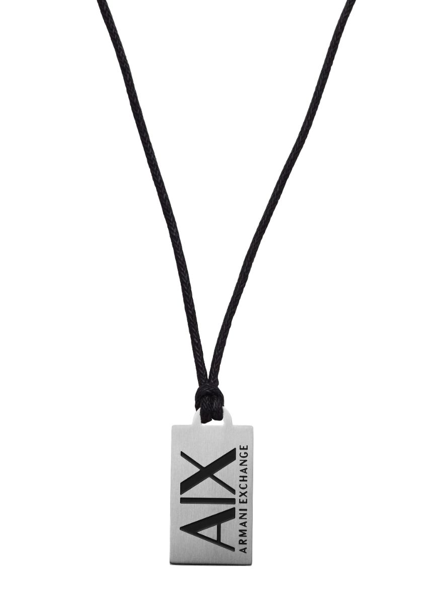 Armani Exchange hopeanvärinen laattakaulakoru AXG0069040 on viimeistelty teräslaatalla. Kaulakoru on nylonpunosta. Kaulakorun pituus on 55 cm, ja laatan koko on 16,5 x 32,5 mm. Armani Exchange-korut toimitetaan valmistajan alkuperäisessä pakkauksessa.