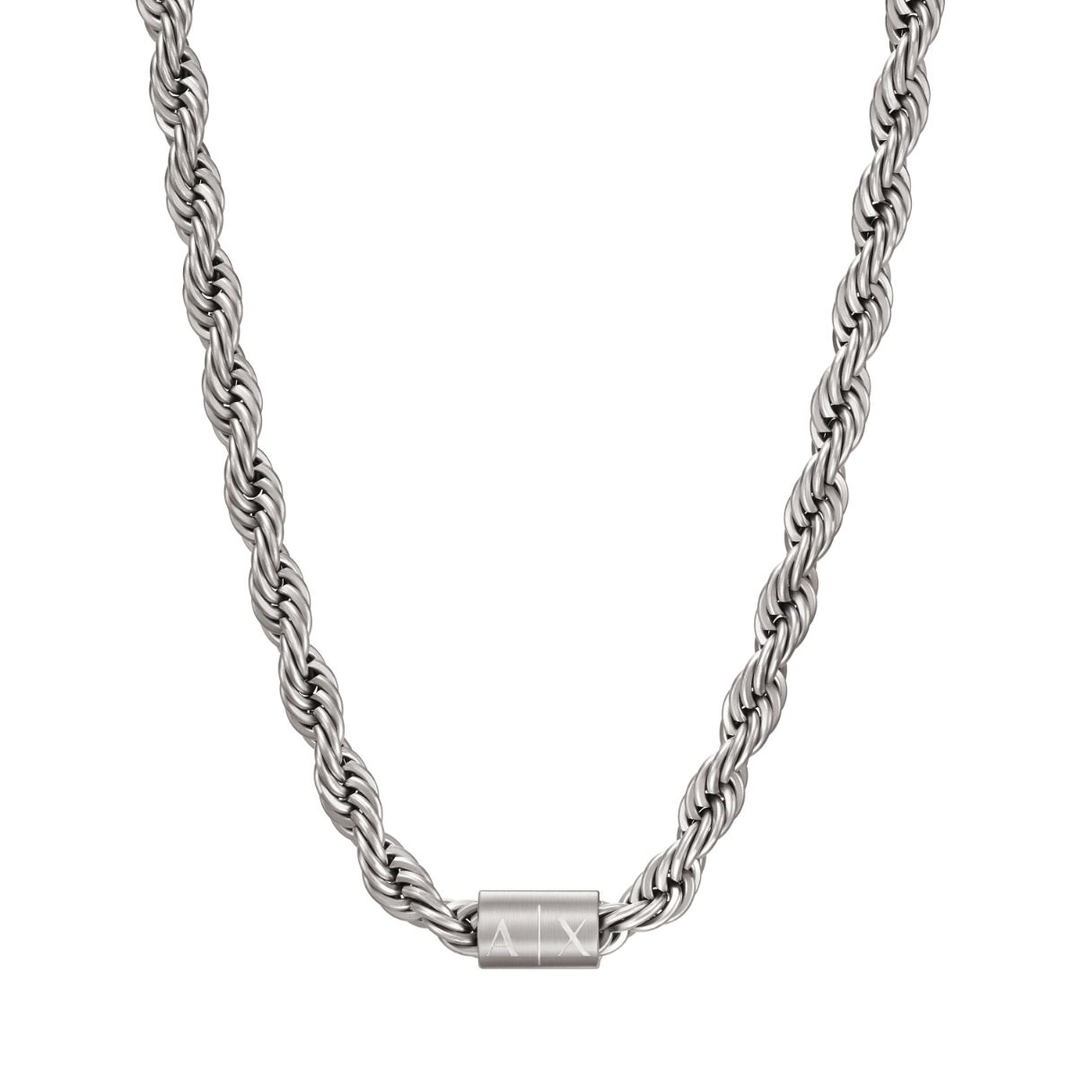 Armani Exchange Icon hopeanvärinen cordell-kaulakoru AXG0125040 on hopeanväristä terästä. Kaulakorun pituus on