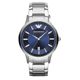 Teräksinen Armani Renato AR11180 on tyylikkäästi muotoiltu miesten rannekello, joka sopii erinomaisesti jokapäiväiseen käyttöön. Kellossa on teräksinen 43 mm leveä runko ja ranneke, ja sininen kellotaulu hopeisin indeksein. Kellotaulussa on myös päivyri. Armani -kellot toimitetaan valmistajan alkuperäisessä pakkauksessa, ja niillä on 2 vuoden takuu.