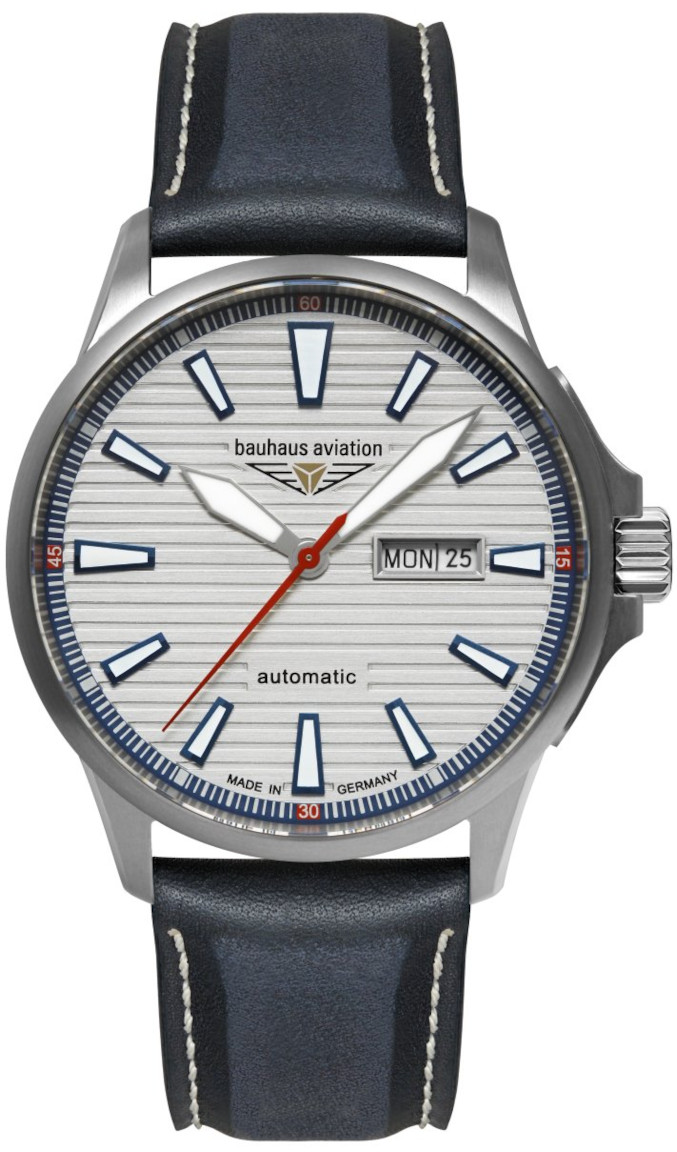 Bauhaus Aviation Horizon Automatic 2862-1 on 21 jalokiven japanilaisella Citizen-Miyota 8205 automaattikoneistolla toimiva lentäjänkello noin 42 tunnin virrankestolla, joka on valmistettu Ruhlan kaupungissa, Saksassa. Kellossa on valkoinen kuvioitu kellotaulu naarmuja kestävällä safiirilasilla, jossa päivä-päivyri klo 3 kohdalla sekä pimeässä hohtavat osoittimet ja indeksit. Kellon takakannen läpi voit ihailla automaattikoneiston toimintaa. Vahvan titaanirungon leveys on 42 mm ja paksuus 13 mm. Nahkaranneke on pituudeltaan 170 - 220 mm ja leveydeltään 22 mm. Kello kuuluu vesitiiviysluokkaan 100m / 10atm eli se soveltuu pintauintikäyttöön ja snorkkelisukellukseen.