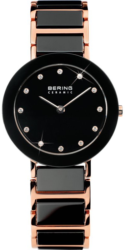 Naisten Keraaminen Bering 11429-746 rannekello. Kellon runko on leveydeltään 29mm ja paksuus 6,5mm. Rannekkeen on leveys 15mm. Kellon rannekkeen mustat osat ovat hyvin naarmuuntumista kestävää keramiikkaa. Bering kelloille myönnetään 3 vuoden takuu. Kaikki Bering kellot toimitetaan postikuluitta valmistajan alkuperäisessä lahjarasiassa.