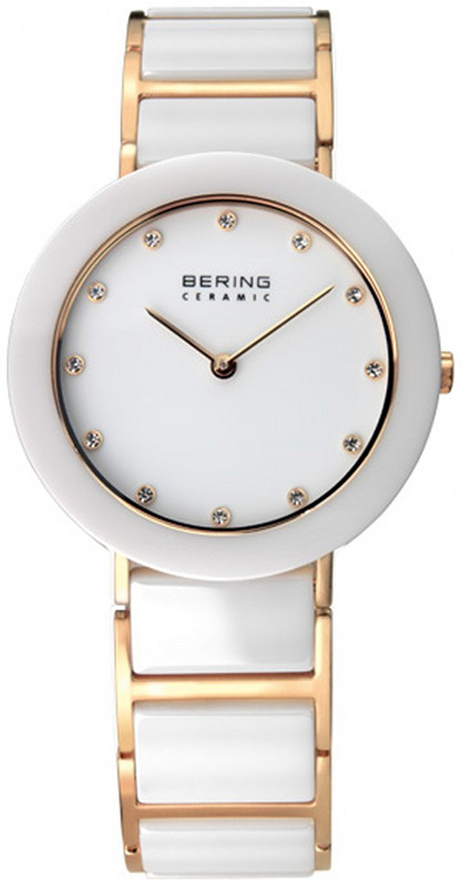 Naisten Keraaminen Bering 11429-751 rannekello. Kellon runko on leveydeltään 29mm ja paksuus 6,5mm. Rannekkeen on leveys 15mm. Kellon rannekkeen valkoiset osat ovat hyvin naarmuuntumista kestävää keramiikkaa. Bering kelloille myönnetään 3 vuoden takuu. Kaikki Bering kellot toimitetaan postikuluitta valmistajan alkuperäisessä lahjarasiassa.