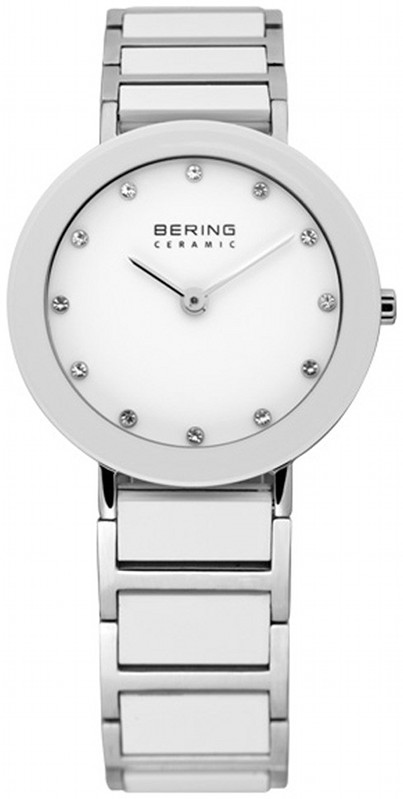 Naisten Keraaminen Bering 11429-754 rannekello. Kellon runko on leveydeltään 29mm ja paksuus 6,5mm. Rannekkeen on leveys 15mm. Kellon rannekkeen valkoiset osat ovat hyvin naarmuuntumista kestävää keramiikkaa. Bering kelloille myönnetään 3 vuoden takuu. Kaikki Bering kellot toimitetaan postikuluitta valmistajan alkuperäisessä lahjarasiassa.