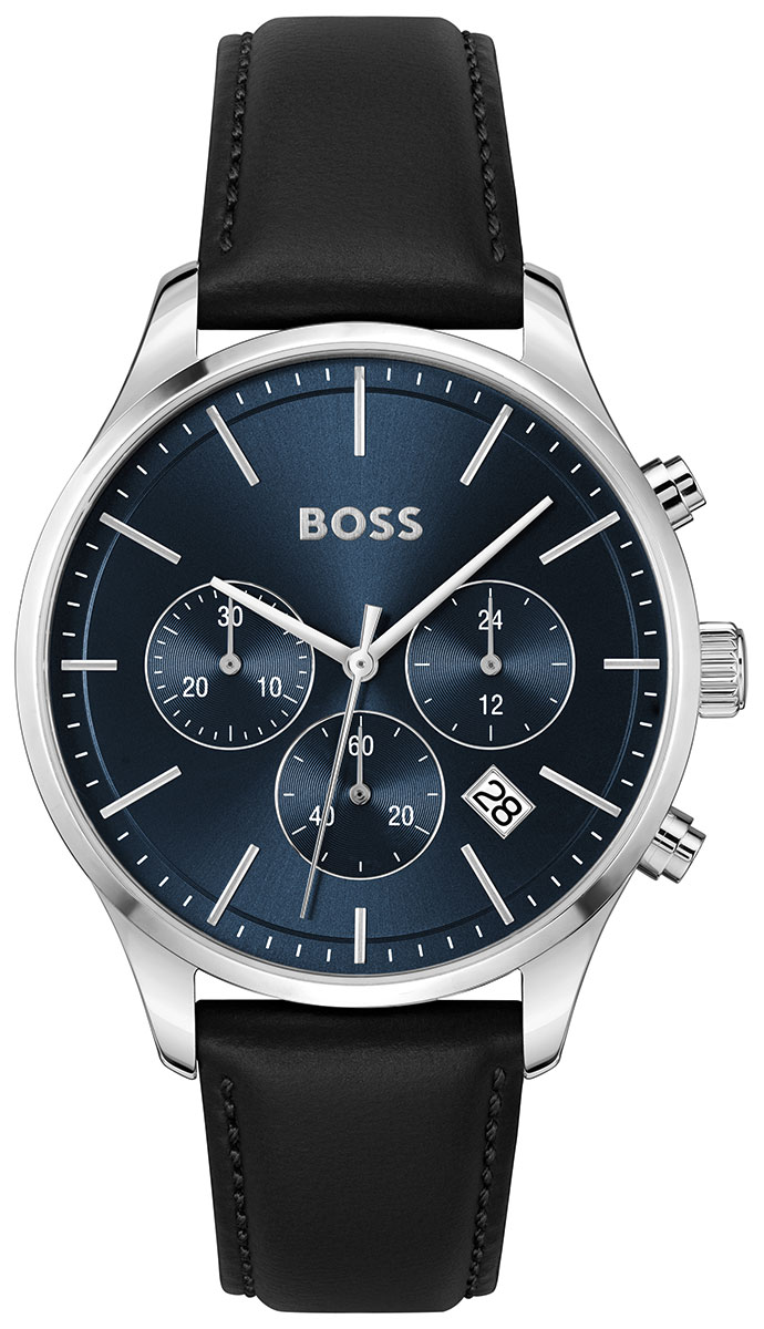 BOSS Avery 1514156 on tyylikäs miesten kronografikello, joka pitää sinut ajassa päivästä toiseen. Ruostumattomasta teräksestä valmistettu kello on varustettu sinisellä kellotaululla, jota suojaa kestävä mineraalilasi. Kellotaulussa on kolme alataulua kronografi/ajanotto-ominaisuuksilla sekä päivyri kello neljän ja viiden välissä. Kellon rungon leveys on 42 mm ja paksuus 10 mm. Aidosta nahasta valmistetun mustan rannekkeen pituus on 145 - 190 mm ja leveys kiinnityskohdasta 20 mm. BOSS Avery 1514156 kuuluu vesitiiviysluokkaan 50m / 5atm eli se on rajoitetusti vesitiivis (uintia ei suositella). Boss-kelloille myönnetään 2 vuoden takuu ja ne toimitetaan valmistajan alkuperäisessä pakkauksessa.