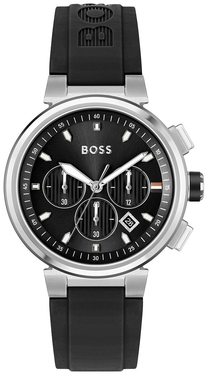 BOSS One Chronograph 1513997 on tyylikäs miesten kello, jonka ruostumattomasta teräksestä valmistettu 44 mm leveä ja 11,4 mm paksu runko on hopeanvärinen. Rannekkeena tässä mallissa on musta silikoniranneke, jonka leveys kiinnityskohdasta on 22 mm. Kellon ominaisuuksiin kuuluu ajanotto ja päivyri. BOSS 1513997 -kellon mustaa kellotaulua suojaa mineraalilasi. Kello kuuluu vesitiiviysluokkaan 50m / 5atm eli se on rajoitetusti vesitiivis (uintia ei suositella). BOSS-kellot toimitetaan valmistajan alkuperäisessä pakkauksessa ja niillä on kahden vuoden takuu.