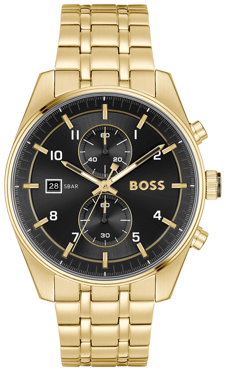 BOSS Skytraveller 1514152 miesten kronografikello on varustettu kahdella alataululla ajan ottoa varten, päivyrillä klo 9 kohdalla sekä luminoiduilla osoittimilla ja indekseillä. Kellon rungon leveys on 44 mm ja paksuus 11,5 mm. Ruostumattomasta teräksestä valmistetun kullanvärisen rannekkeen pituus on 160 - 210 mm ja leveys kiinnityskohdasta 22 mm. Kello kuuluu vesitiiviysluokkaan 50m / 5atm eli se on rajoitetusti vesitiivis (uintia ei suositella). Boss-kelloille myönnetään 2 vuoden takuu ja ne toimitetaan valmistajan alkuperäisessä pakkauksessa.
