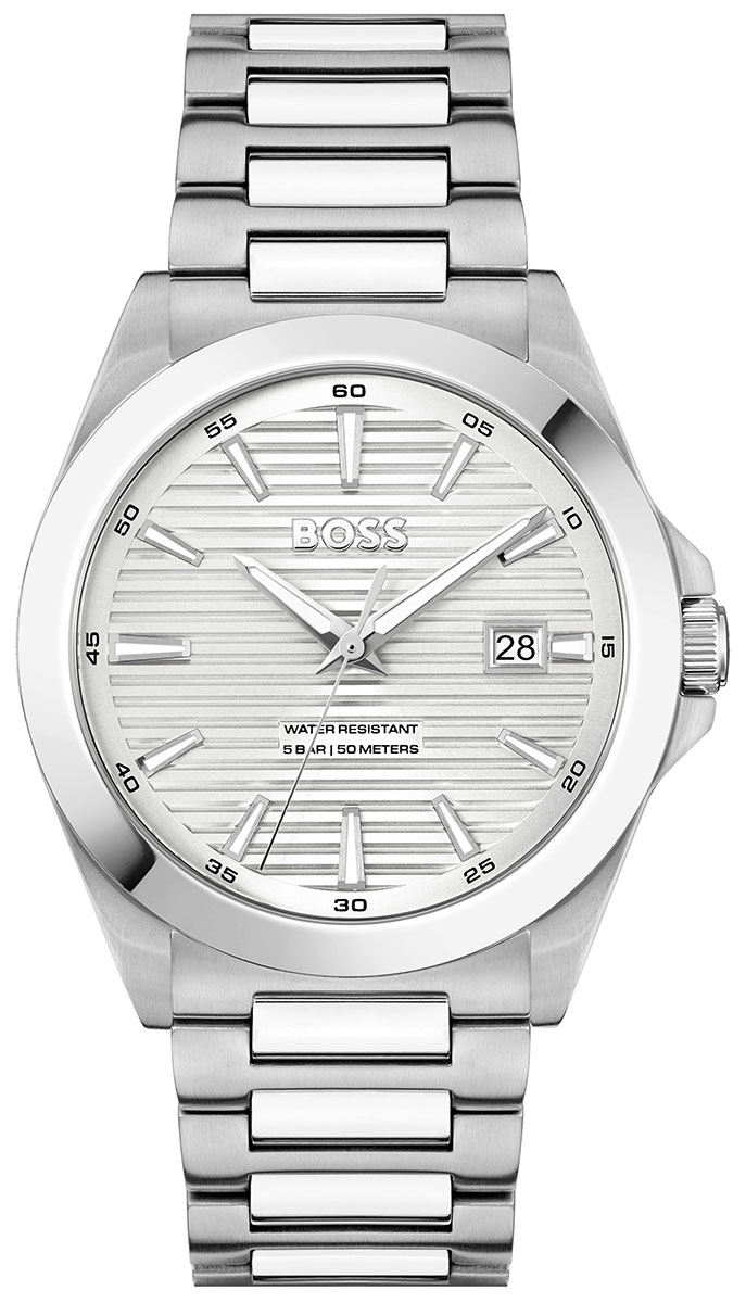 BOSS Strike 1514176 kvartsikoneistolla käyvässä rannekellossa on 41 mm leveä ja 9,2 mm paksu ruostumattomasta teräksestä valmistettu runko. Mineraalilasi suojaa hopeanväristä kellotaulua, jossa on päivyri klo 3 kohdalla, luminoidut osoittimet ja indeksit sekä erillinen minuuttiasteikko kehyksessä. Hopeanvärisen teräsrannekkeen leveys kiinnityskohdasta on 22 mm. BOSS Strike 1514176 kuuluu vesitiiviysluokkaan 50m / 5atm eli se on rajoitetusti vesitiivis (uintia ei suositella).