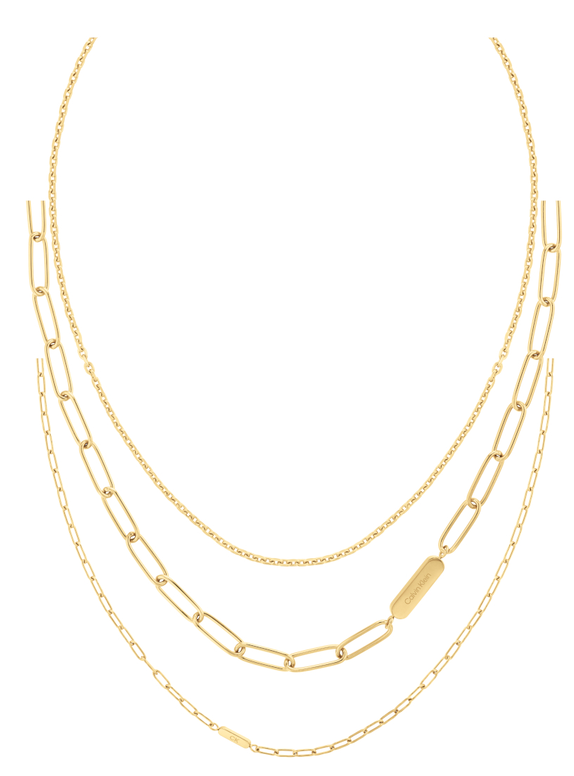 Calvin Klein Chain kaulakoru 35000433 korusetin avulla luot täydellisen kerrostetun ilmeen. Setti sisältää kolme eripaksuista kaulakorua, jotka voit pukea yhdessä tai erikseen. Kaulakorujen koko on 36 cm,40 cm,45+25 cm. Calvin Klein-korut toimitetaan valmistajan alkuperäisessä rasiassa.