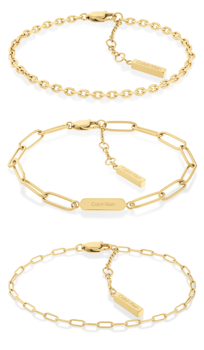 Calvin Klein Chain rannekoru 35000435 korusetin avulla luot täydellisen kerrostetun ilmeen. Setti sisältää kolme eripaksuista rannekorua, jotka voit pukea yhdessä tai erikseen. Rannekorujen koko on 16,5 + 2,5 cm. Calvin Klein-korut toimitetaan valmistajan alkuperäisessä rasiassa.