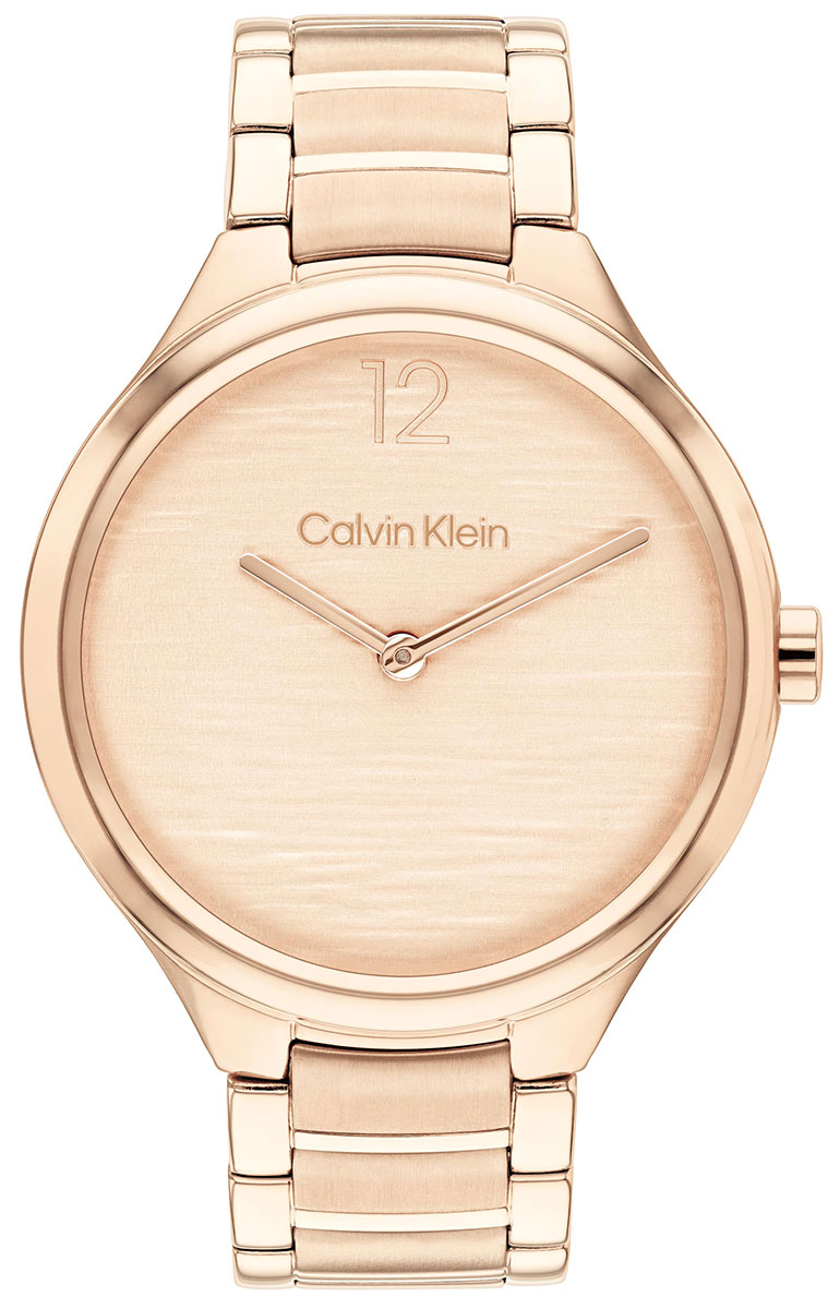 Calvin Klein Delight 25100050 on sulavalinjainen naisten rannekello kvartsikoneistolla, jonka ruostumattomasta teräksestä valmistettu runko on 38 mm leveä ja 8,2 mm paksu. Kellossa on punakullanvärinen ruostumaton teräsranneke, jonka leveys kiinnityskohdasta on 11 mm. Kestävä mineraalilasi suojaa punakultaista ja minimalistista kellotaulua, jossa on yksittäinen numeroindeksi klo 12 kohdalla. Kello kuuluu vesitiiviysluokkaan 30m / 3atm eli se on roiskevesitiivis. Calvin Klein -rannekellot toimitetaan valmistajan alkuperäisessä pakkauksessa ja niillä on kahden vuoden takuu.