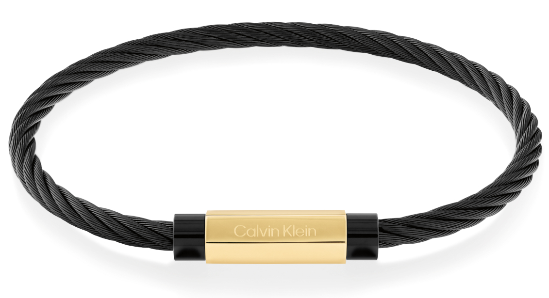 Calvin Klein Modern Grid rannekoru 35000420 on vaijeriketjua, ja sekä musta ketju että kullanvärinen solki ovat ruostumatonta terästä. Tämä miesten rannekoru on pituudeltaan 19,5 cm. Calvin Klein-korut toimitetaan valmistajan alkuperäisessä rasiassa.