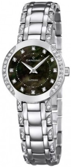 Upea naisten Candino C4502/4 rannekello runkoon upotetuilla Zirconia -korukivillä. Kellon rungon leveys on 27mm ja paksuus 8mm. Rannekkeen leveys 14mm. Kellossa tumma helmiäiskellotaulu. Candino kelloille myönnetään kahden vuoden takuu ja ne toimitetaan valmistajan alkuperäisessä rasiassa.