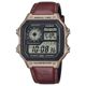 Casio AE-1200WHL-5AVEF -digitaalikellon hartsirunko on leveydeltään 42,1 mm ja paksuudeltaan 12,5 mm. Akryylilasi suojaa kellotaulua, jossa on ominaisuuksina maailmanaika, sekuntikello, ajastin, 5 päivittäistä hälytystä, automaattinen kalenteri sekä 12/24h-, päivämäärä- ja viikonpäivänäytöt. Klassinen ruskea ranneke on aitoa nahkaa ja lisämukavuutta tuo kellon kevyt kokonaispaino, joka on vain 39 grammaa. Casio AE-1200WHL-5AVEF kuuluu vesitiiviysluokkaan 100m / 10atm eli se soveltuu pintauintikäyttöön ja snorkkelisukellukseen.