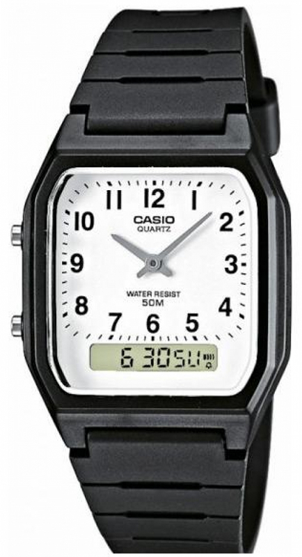Perinteinen Casion ana-digi rannekello, Casio AW-48H-7BVEG. Kellossa on kaksoisaika, 12/24h näyttö, ajanotto/sekkari, hälytys, tasatuntisignaali ja kalenteri. Kellon rungon leveys 30mm ja paksuus 9mm. Casio kelloille myönnetään 2 vuoden takuu ja ne toimitetaan valmistajan alkuperäisessä rasiassa.