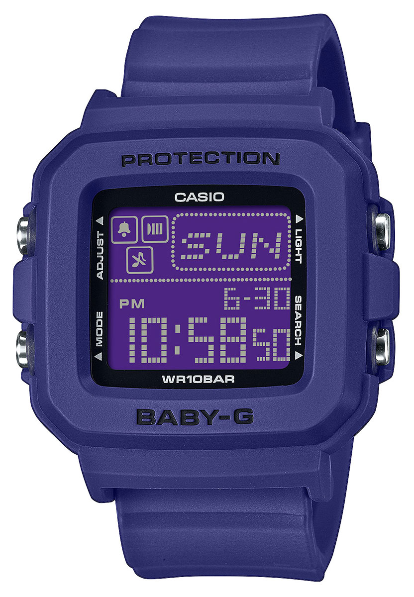 Casio Baby-G BGD-10K-2ER on iskunkestävä rannekello, joka juhlistaa Baby-G:n 30-vuotisjuhlaa. Kellon ominaisuuksiin kuuluu muun muassa ajastin, ajanotto-ominaisuudet, maailmanaika, hälytykset, automaattinen kalenteri, 12/24h-, päivämäärä- ja viikonpäivä näytöt. Kellon violetti hartsirunko on 39 mm leveä, 14,7 mm paksu ja sen paino on ainoastaan 33 grammaa. Rannekellon violetti ranneke on valmistettu ympäristöystävällisestä biopohjaisesta hartsista ja kestävä mineraalilasi suojaa digitaalista kellotaulua. Casio Baby-G BGD-10K-2ER -kellon vesitiiviys on 100 m / 10atm eli se soveltuu pintauintikäyttöön ja snorkkelisukellukseen, ei laitesukellukseen. Kellon mukana tulee erillinen pyöreä ja violetti kotelo, johon voit irrottaa kellon moduulin ja kiinnittää siihen helposti ilman työkaluja. Näin voit kantaa kelloa uudessa kotelossa vaikka kiinnittäen sen reppuun.