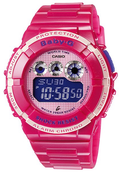 Casio Baby-G sarjan erikoisiskunkestävä kello Casio Baby-G BGD-121-4. Kellossa Illuminator erikoiskirkas taustavalo, maailmanaika, ajantotto/sekkari, ajastin, 5 hälytystä, kalenteri, 12/24h näyttö ja torkkuherätys. Kellon rungon leveys 37mm, rannekkeen leveys 20mm ja vesitiiveys 200m. Casio kelloille myönnetään 2 vuoden takuu ja ne toimitetaan valmistajan alkuperäisessä rasiassa.