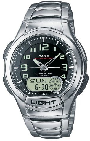 Casio Collection sarjan kello Casio Collection AQ-180WD-1. Kellossa LED-valo, telememo (30 muistipaikkaa), maailmanaika, ajanotto/sekkari, ajastin ,3 hälytystä, torkku, kalenteri,12/24 tunnin näyttö, pyöristetty lasi ja arvioitu patterinkesto 10 vuotta. Kellon rungon leveys 41mm, rannekkeen leveys 18mm ja vesitiiveys 100m. Casio kelloille myönnetään 2 vuoden takuu ja ne toimitetaan valmistajan alkuperäisessä rasiassa.