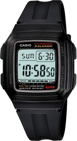 Casio Collection sarjan kello Casio Collection F-201WA-1AEG. Kellossa LED-taustavalo, kaksoisaika, 12/24h näyttö, ajanotto/sekkari, ajastin, 5 hälytystä ja torkku. Kellon rungon leveys 36mm ja rannekkeen leveys 16mm. Casio kelloille myönnetään 2 vuoden takuu ja ne toimitetaan valmistajan alkuperäisessä rasiassa.