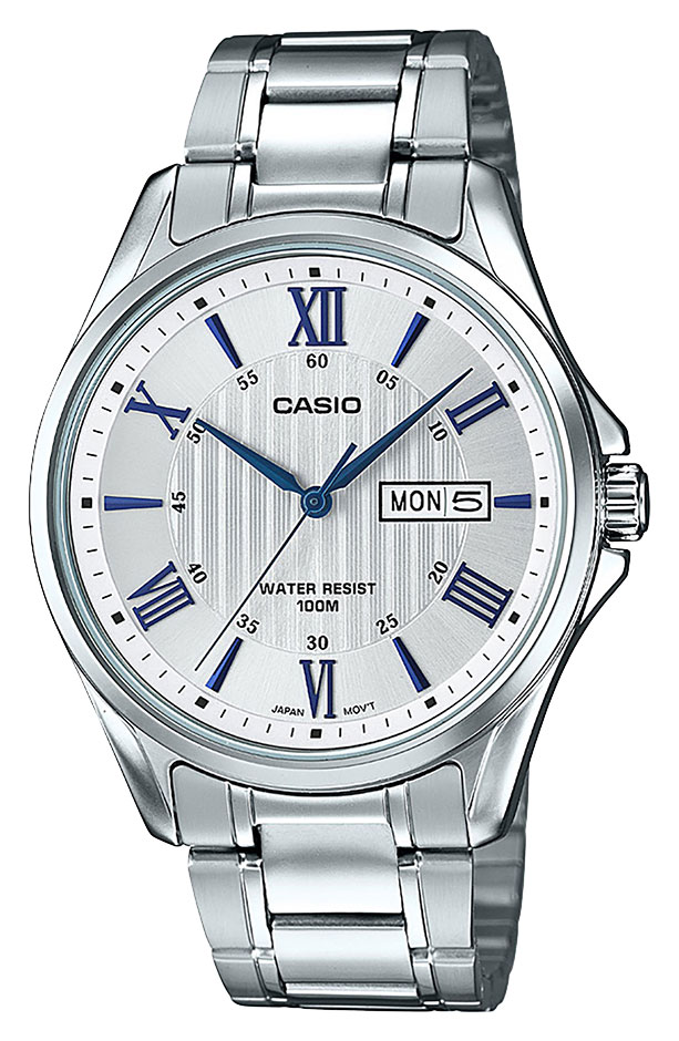 Casio Enticer MTP-1384D-7A2VEF on miesten rannekello kvartsikoneistolla. Kellossa on 41 mm leveä ja 10 mm paksu hopeanvärinen teräsrunko. Rannekkeena tässä mallissa on hopeanvärinen teräsranneke. Ominaisuuksiin kuuluu päivyri ja viikonpäivänäyttö. Mineraalilasin alla suojassa on valkoinen kellotaulu, jossa roomalaiset numerot. Casio MTP-1384D-7A2VEF -kellon vesitiiviysluokka on 100m / 10atm eli soveltuu pintauintikäyttöön ja snorkkelisukellukseen, ei laitesukellukseen. Casio-kelloilla on kahden vuoden takuu ja ne toimitetaan valmistajan alkuperäisessä rasiassa.