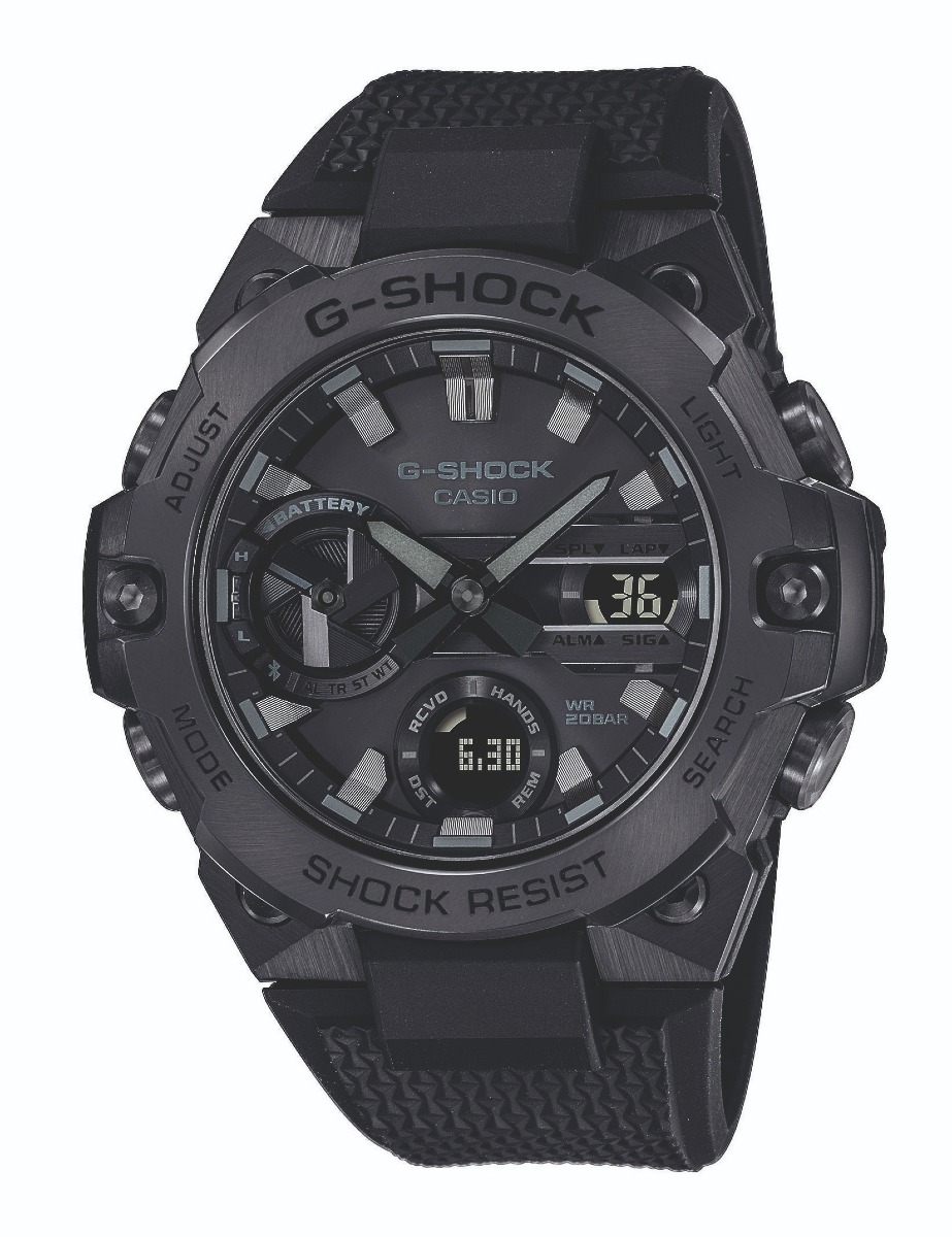 Casio G-Shock Black on Black GST-B400BB-1AER ihastuttaa monokromaattisella värimaalmallaan. Kellossa on suuri 46,6 mm leveä IP-pinnoitettu teräsrunko sekä musta ranneke. Taulusta on helppo seurata kellon aikaa sekä solar-koneistosta virtanta ottavan pariston varaustasoa. Viisarit ovat luminoituvat. PErinteisen ajannäytön lisäksi mello on mahdollista pariliittää puhelimen kanssa, jolloin saat käyttöösi mm. puhelimen etsinnän suoraan kellosta. Täysmusta Casio GST-B400BB-1AER on erikoisvalmisteinen Limited Edition -erikoismalli ja valmistettu ainoastaan rajoitettu määrä. Kello toimitetaan omassa alkuperäisrasiassaan.