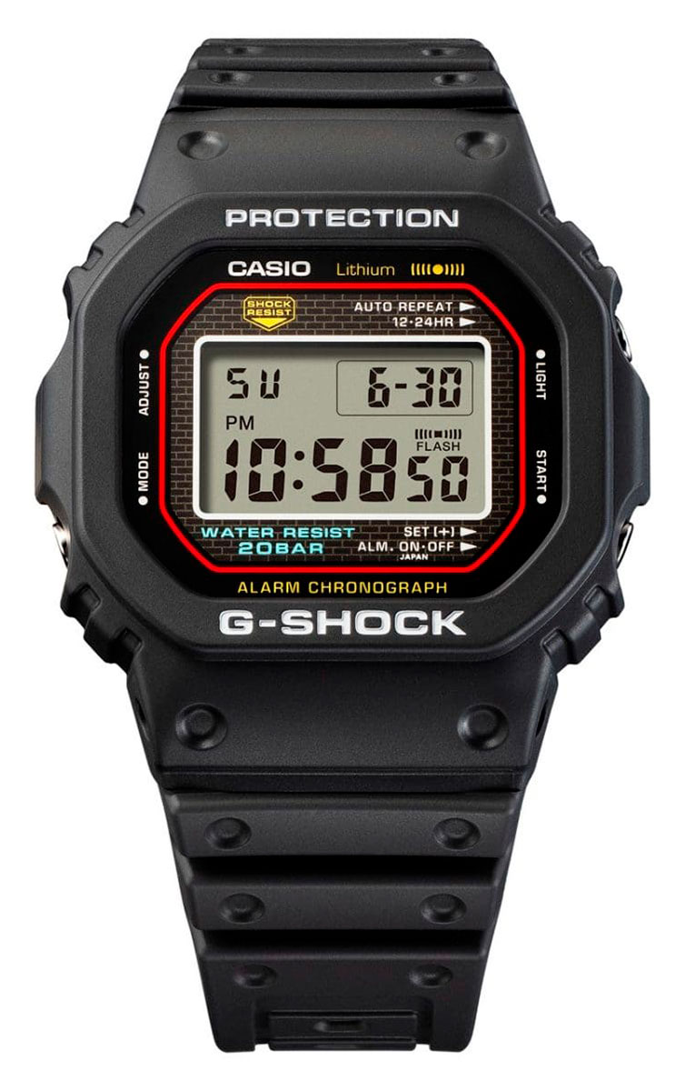 Casio G-Shock DW-5000R-1AER pysyy uskollisena G-SHOCKin alkuperälle. Tämä päivitetty malli perii ensimmäisen G-SHOCKin suunnittelukonseptit, ja samalla sisältäen nykyaikaiset Casio-tekniikat, jotka tarjoavat nykypäivän edistyneitä toimintoja. Casio G-Shock DW-5000R-1AER on tyylikäs iskunkestävä rannekello, jonka rungon leveys on 42,3 mm ja se on 13,1 mm paksu. Koko paino on vain 76 grammaa. Sen musta ranneke on valmistettu biopohjaisesta hartsista, jonka pituus on 145 - 205 mm. Mineraalilasi suojaa digitaalista kellotaulua, jossa on ominaisuuksina muun muassa ajanotto, sekuntikello, monihälytys, tasatuntisignaali, automaattinen kalenteri sekä 12/24h-, päivämäärä- ja viikonpäivänäytöt. Casio G-Shock DW-5000R-1AER kuuluu vesitiiviysluokkaan 200m / 20atm, joten se soveltuu uintiin ja laitesukellukseen.