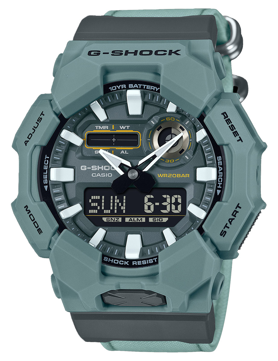 GA-010CE-2A sopii saumattomasti sekä vapaa-aikaan että työympäristöön. Super Illuminator LED -taustavalo takaa helpon luettavuuden pimeässä, ja analogisen sekä digitaalisen näytön yhdistelmä tarjoaa monipuoliset käyttömahdollisuudet.