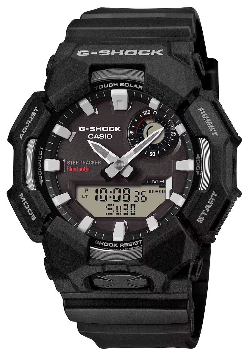 GA-B010 toimii täysin Tough Solar -aurinkovoimalla, joka mahdollistaa askelten mittaamisen ja datan näyttämisen ilman paristonvaihtoja. Bluetooth®-yhteys siirtää kerätyn datan älypuhelimeen, jossa CASIO WATCHES -sovellus tarjoaa automaattisen ajan-tarkistuksen ja helpon pääsyn aktiivisuustiedoille.