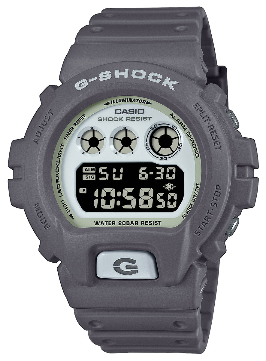 Casio G-Shock DW-6900HD-8ER Hidden Glow on Limited Edition -malli eli sitä on valmistettu ainoastaan rajoitettu määrä. Se on japanilaisen Casion suunnittelema ja valmistama retrohenkinen G-Shock-kello. Kellon hartsista valmistettu harmaa runko on 50 mm leveä ja 18,8 mm paksu. Koko paino on 72 grammaa. Harmaa ranneke on polyuretaania. Mineraalilasi suojaa digitaalista kellotaulua. Kellon vesitiiviys on 200m / 20atm, joten se on erikoisvesitiivis (soveltuu laitesukellukseen).