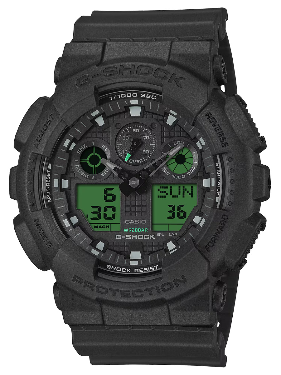 Rohkea, dynaaminen ja sähköinen. G-Shock GA-100BEG-1AER Limited Edition tuo ranteeseesi sähköistävää energiaa, jossa G-Shockin ikoninen mattamusta kohtaa iskevän "Electro Green" -tehostevärin. Tämä kello on suunniteltu niille, jotka eivät pelkää erottua ja jotka vaativat kelloltaan sekä teknistä ylivoimaa että tinkimätöntä visuaalista designia.