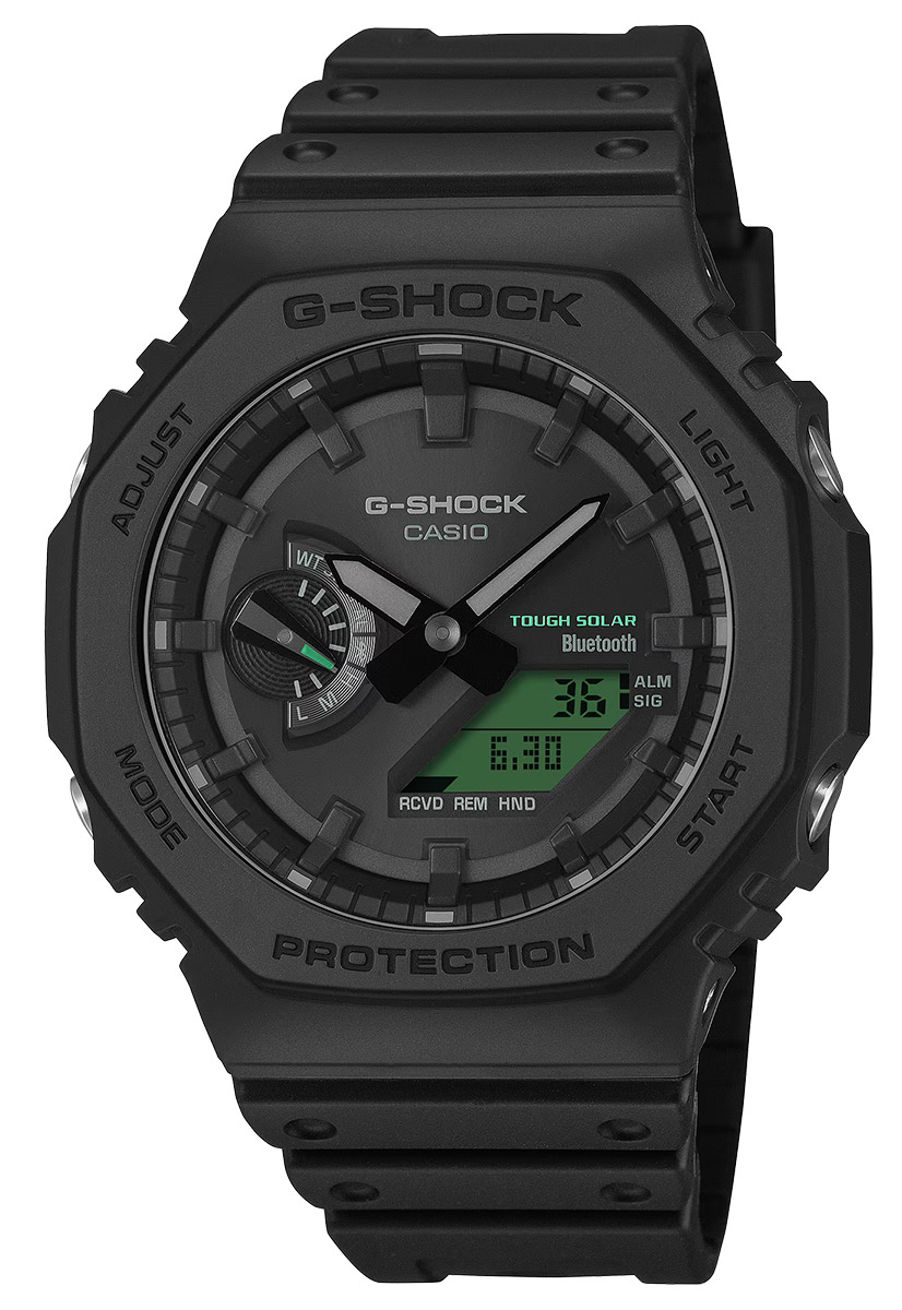 GA-B2100-sarja tunnetaan poikkeuksellisen ohuesta profiilistaan, joka on saavutettu Carbon Core Guard -rakenteen ansiosta. Hiilikuituvahvisteinen runko on äärimmäisen kevyt mutta kestävä. Tässä mallissa on otettu askel kohti kestävämpää tulevaisuutta käyttämällä biopohjaista hartsia sekä rungossa että rannekkeessa. Tyylikkään mustan ja sähköisen vihreän kontrasti luo futuristisen ilmeen, joka kruunataan kirkkaalla Double LED -valolla.