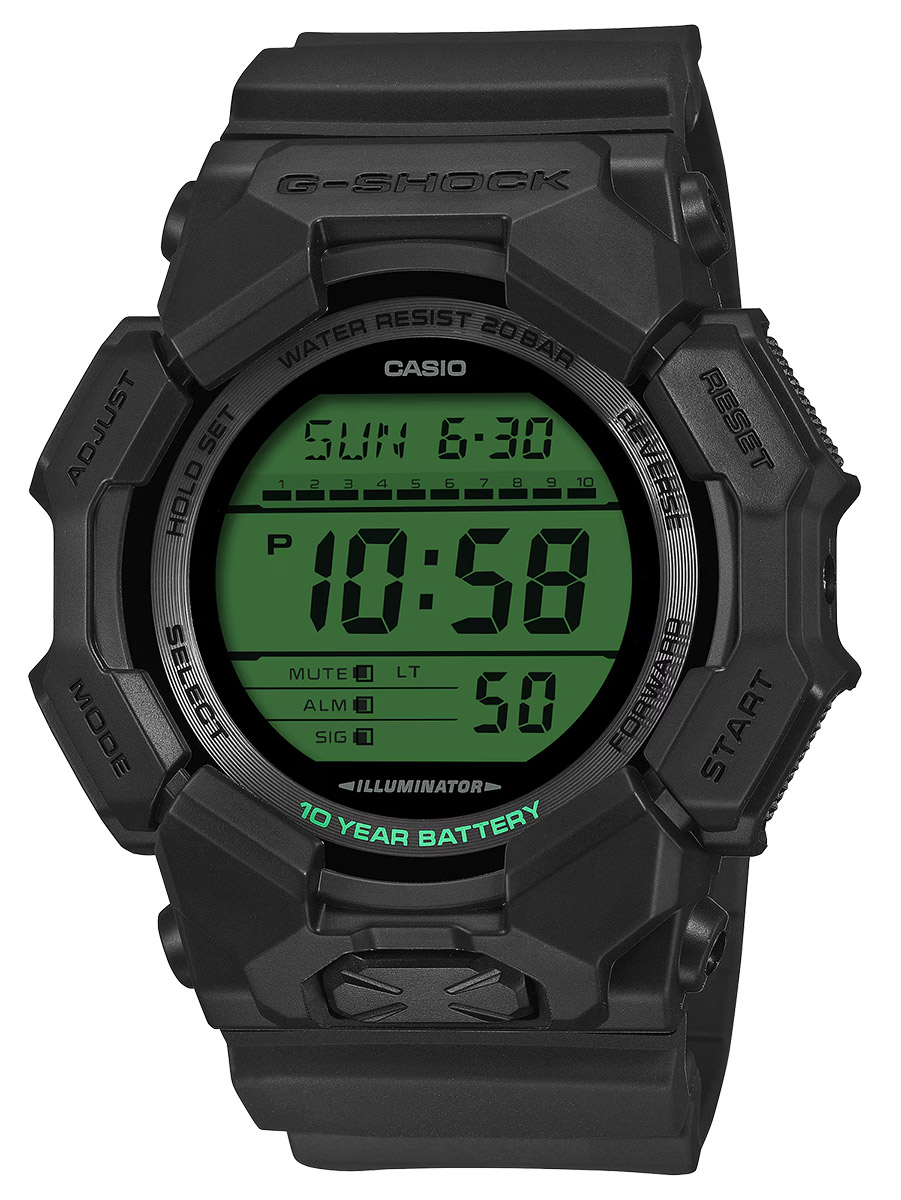Kellon näyttävä ulkoasu rakentuu klassisen mustan kuoren ja rannekkeen ympärille, joita korostavat digitaalinäytön sähkönvihreät yksityiskohdat. Kontrasti on terävä, tyylikäs ja futuristinen. Olitpa sitten kaupungin sykkeessä tai pimeässä metsässä, Super Illuminator -LED-taustavalo takaa, että näet kellonajan selkeästi yhdellä napin painalluksella.