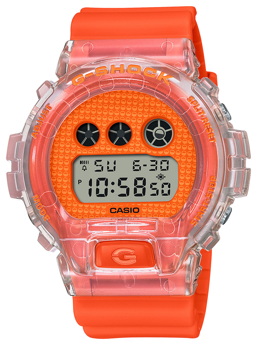 Japanilaisen Gashpon-hahmojen innoittama Casio G-Shock Limited Edition DW-6900GL-4ER kirkkaan oranssi digitaalikello sopii täydellisesti jokaiselle värikästä kelloa etsivälle. Täydellinen valinta kesäkelloksi, tämä Casio G-Shock Limited Edition DW-6900GL-4ER "LUCKY DROP" sisältää kaikki toiminnot, joita voi toivoa, kirkkaanvärisessä pakkauksessa. DW-6900GL-4ER digitaalikellossa on iskunkestävä rakenne, vilkkuva monihälytys, sekuntikello, 12/24 ajan näyttö ja 200 metrin vedenkestävyys. Digitaalisessa näytössä näkyy aika ja päivämäärä, ja kun hälytys on asetettu, kello antaa äänen ja kellotaulu vilkkuu muistutuksena. Casio G-Shock Limited Edition DW-6900GL-4ER -digitaalikellolla on 2 vuoden takuu, ja se toimitetaan valmistajan alkuperäispakkauksessa.