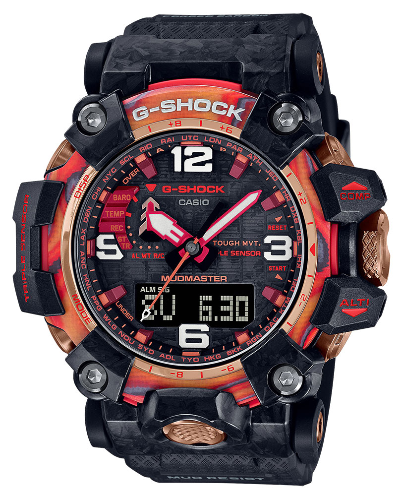 Casio G-Shock Master of G Mudmaster 40th Anniversary Flame Red GWG-2040FR-1AER on Limited Edition -erikoismalli eli sitä on valmistettu ainoastaan rajoitettu määrä. Kello juhlistaa Casio G-Shockin 40-vuotisjuhlaa. Casio G-Shock Master of G Mudmaster 40th Anniversary Flame Red Limited Edition GWG-2040FR-1AER on tehty äärimmäisen kovaan käyttöön ja se kestää kaikki matkan aikana kertyneet mudat ja hiekat. Kellon 54,4 mm leveä ja 16,1 mm paksu runko on valmistettu hartsista ja sen kehä on ruostumatonta terästä. Kellon paino on 112 grammaa. Safiirilasi suojaa kellotaulua. Kello saa virtansa valosta, jolla se lataa akkuaan kellotaulussa olevan aurinkokennon kautta. Kello on iskunkestävä ja vesitiiviys on jopa 200 m / 20atm, joten se on erikoisvesitiivis (soveltuu laitesukellukseen).