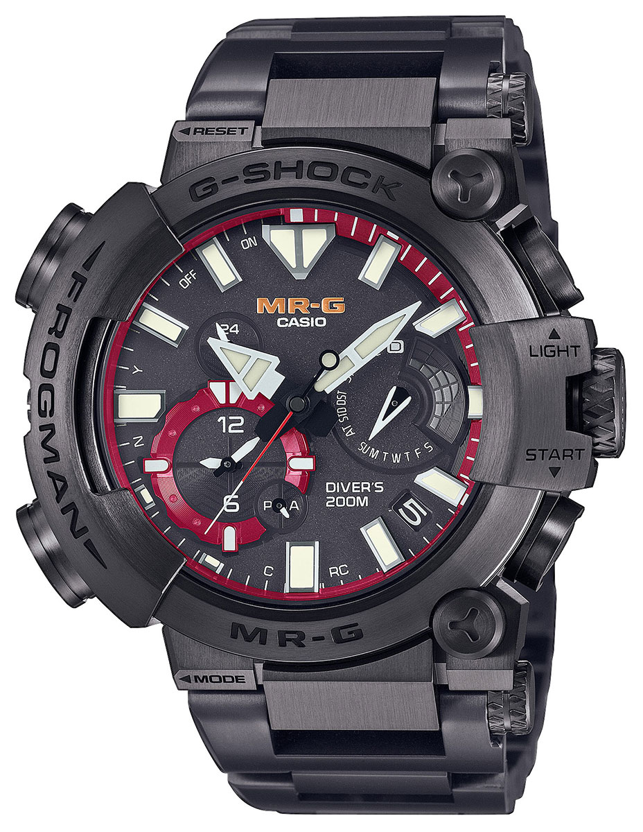 Casio G-Shock MR-G Frogman MRG-BF1000B-1ADR on alunperin hartsista valmistettu kello, joka on nyt suunniteltu ja valmistettu uudelleen kestävästä titaanista, ja jonka jokainen komponentti on luotu erikseen ja kiillotettu huolellisesti, mikä antaa täysin uudenlaisen huippulaadun tunteen tähän Frogman-malliston uusimpaan G-Shock kelloon.