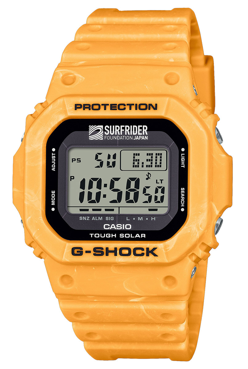 Koe meren ja auringon rauhoittava yhteys Casio G-5600SFJ-9ER -kellolla, joka on G-SHOCKin ja Surfrider Foundation Japanin yhteistyömalli. Suunniteltu surffauksen ja extreme-lajien ystäville, tämä erikoismalli yhdistää ympäristötietoisuuden ja G-SHOCKin tunnetun kestävyyden – loistovalinta aktiiviseen ja luonnonläheiseen elämäntapaan.