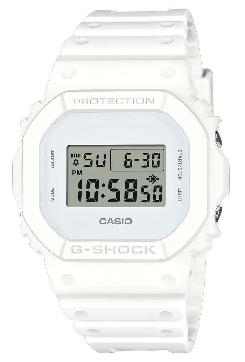 Omaksu yksivärinen tyyli huomiota herättävällä Casio DW-5600WW-7ER -kellolla, joka huokuu hillittyä itsevarmuutta. Tämä täysin valkoinen G-SHOCK ei ainoastaan käännä katseita – se määrittelee minimalistisen tyylin uudelleen. Kotelo, kehys, ranneke ja kellonäyttö ovat kaikki kauttaaltaan valkoisia, muodostaen rohkean ja yhtenäisen ilmeen.