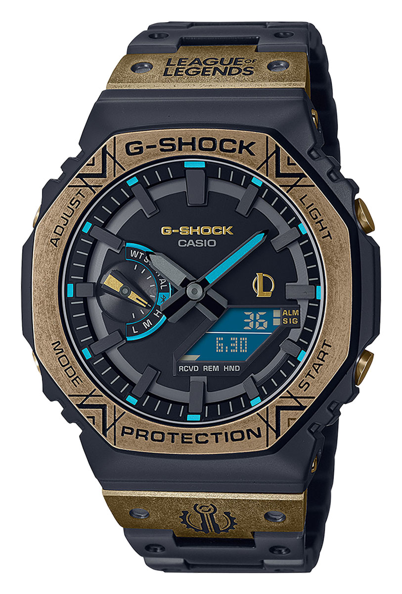 Tämä täysin uusi GA-B2100-sarjalainen on saanut ylleen uuden värimaailman, jonka inspiraationa toimii jokaiselle pelaajalle tuttu Hextech-teknologia. Kellon teräsbezelissä on näyttävä kulutetun kullanvärinen ioni-pinnoite, jota vasten sointuu turkoosit tehosteet. Kokonaisuuden viimeistelee Piltover-vaakuna.