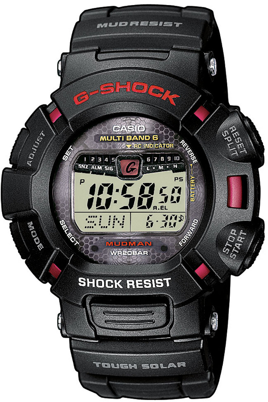 Iskunkestävä ja 200 metriin vesitiivis Casio G-Shock GW-9010-1ER rannekello saa käyntivirtansa valosta, joten siihen ei tarvitse vaihtaa paristoa. Se on radiocontrolloitu, eli saa tarkan käyntiaikansa radiosignaalista. Sen kuori on suunniteltu mutaa ja likaa eristäväksi, joten se pysyy kunnossa rajummassakin menossa. Kellossa automaattinen led-valo, joka syttyy pimeässä rannetta kääntämällä ja siitä saa näppäinäänet pois jos tarve vaatii. Näiden lisäksi siinä on maailmanaika, 1/100 sekunnin tarkkuudella aikaa mittaava ajanotto/sekkari, ajastin, ralliajastin, 5 erillistä hälytystä/herätystä, torkku, tasatuntisignaali, kalenteri ja 12/24h näyttö. Kello painaa 56 grammaa, sen rungon leveys on 46,30mm ja paksuus 16,30mm. Casio kelloille myönnetään 2 vuoden takuu. Tuote toimitetaan valmistajan alkuperäisessä rasiassa.