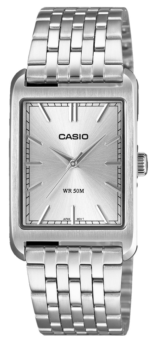 Casio Timeless Collection MTP-B215D-7AVEF on täydellinen valinta sinulle, joka etsit kelloa, jossa yhdistyvät vintage-henkinen muotoilu ja nykyaikainen minimalistinen tyyli. Tämän Timeless Collection -mallin katseenvangitsijana toimii upea, hopeanvärinen kellotaulu, jota kehystää harjattu teräsrunko. Sen suorakulmainen "tank"-muotoilu on ajaton klassikko, joka sopii erinomaisesti niin juhlapuvun kuin rennomman arkipukeutumisen pariksi.