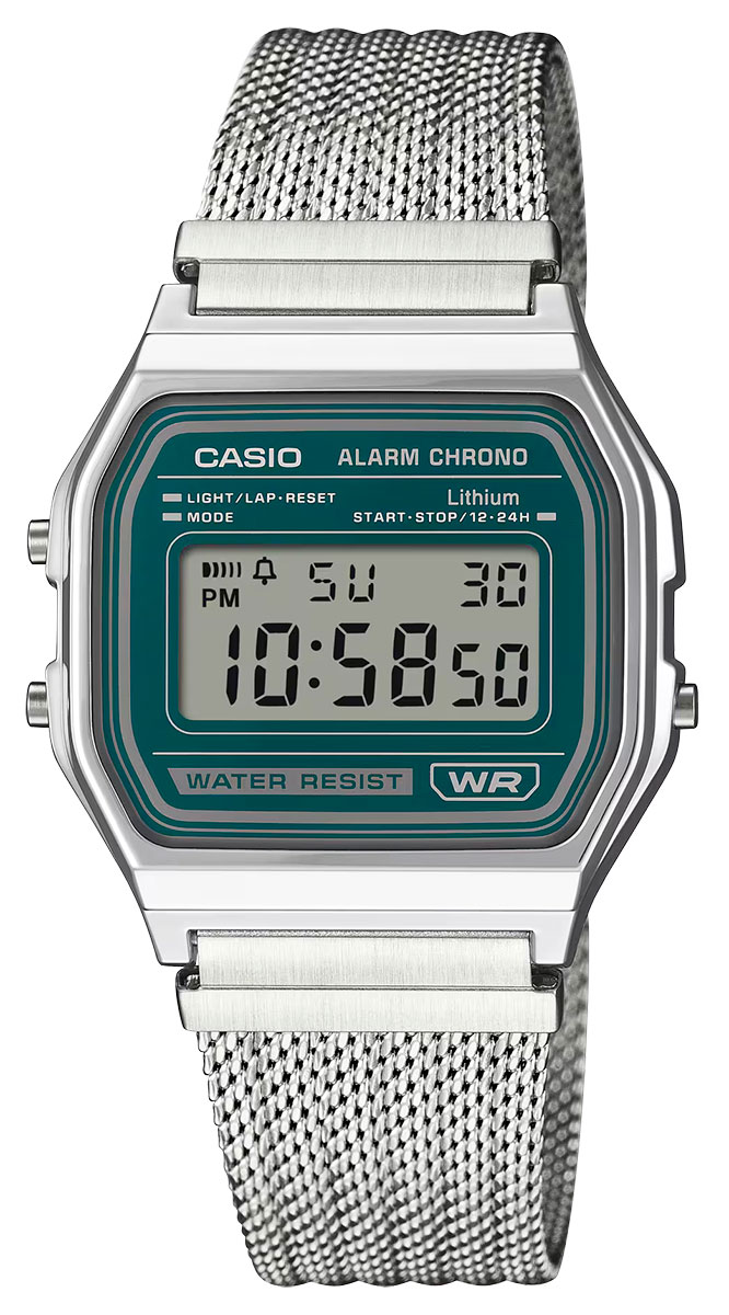 Casio päivittää rakastetun klassikon uudelle tasolle: ikoninen ja helppokäyttöinen A158 saa tyylikkään, elegantin ilmeen mesh-rannekkeen ansiosta. Erityisellä puristusmenetelmällä käsitelty teräsranneke tuo syvyyttä, rakennetta ja viimeistellyn vintage-tunnelman, joka tuntuu miellyttävältä ranteessa päivän jokaisena hetkenä.