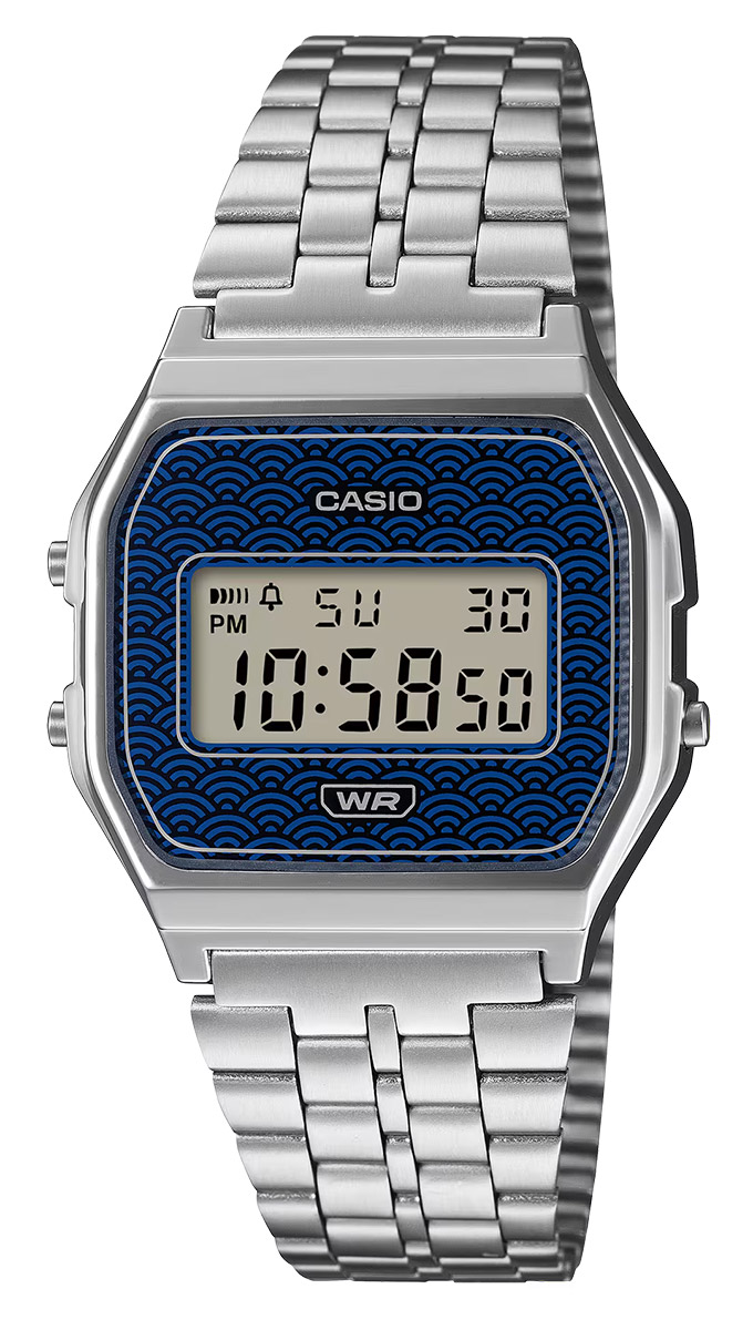 Casio Vintage A159WEVJ-2ER on kunnianosoitus japanilaiselle muotoilulle ja käsityöperinteelle. Tämä rajoitetun erän malli pohjautuu Yamagatan “mother factoryssa” valmistettuun klassiseen A159-runkoon, mutta tuo siihen ainutlaatuisen visuaalisen ilmeen, joka ammentaa inspiraationsa perinteisestä japanilaisesta taiteesta. Kellotaulua koristaa seigaiha-kuvio, aaltoilevista kaarista muodostuva meren ja aaltojen symboli, joka edustaa jatkuvuutta, rauhaa ja hyvää onnea.